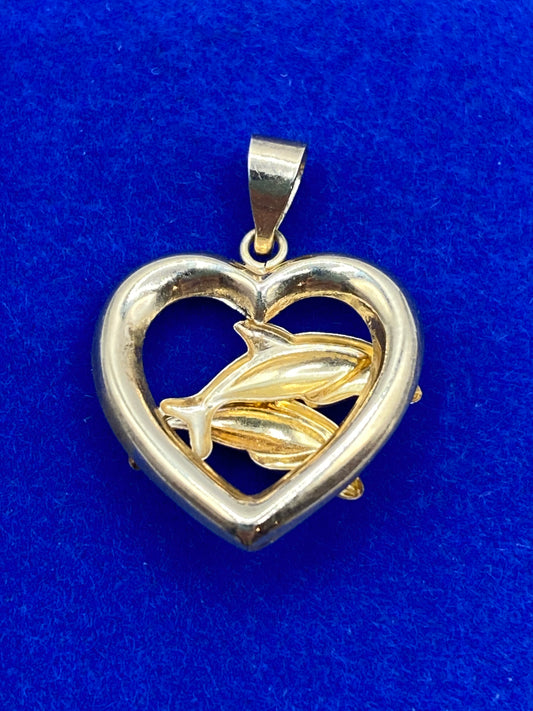 10K Gold Dolphin Heart Pendant