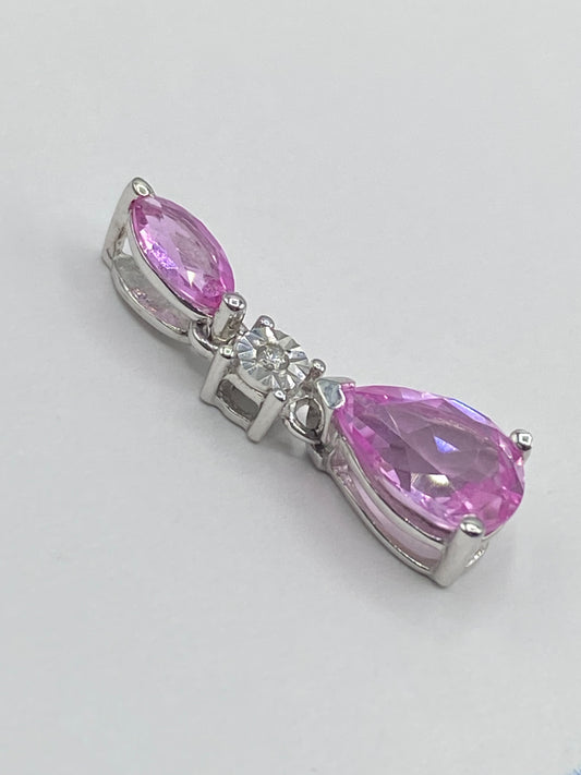10K White Gold Pink Sapphire & Diamond Pendant