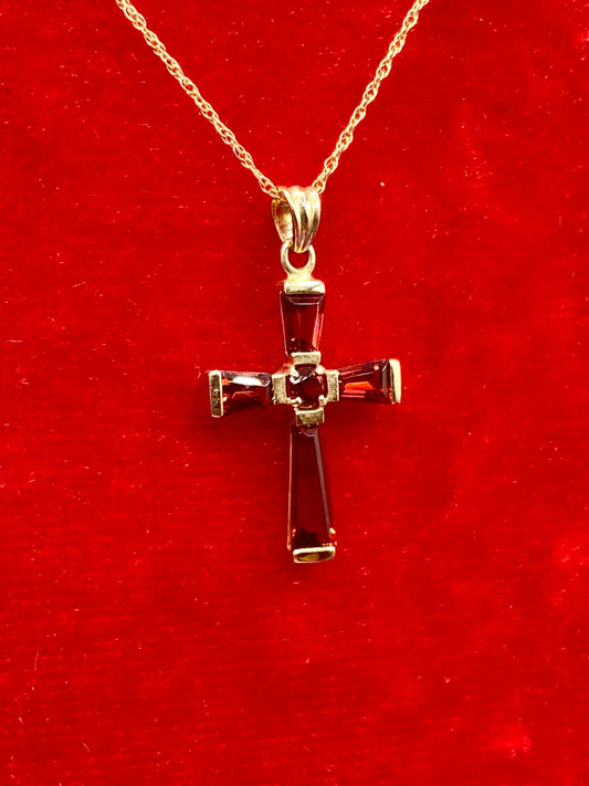 10K Gold Garnet Cross Necklace