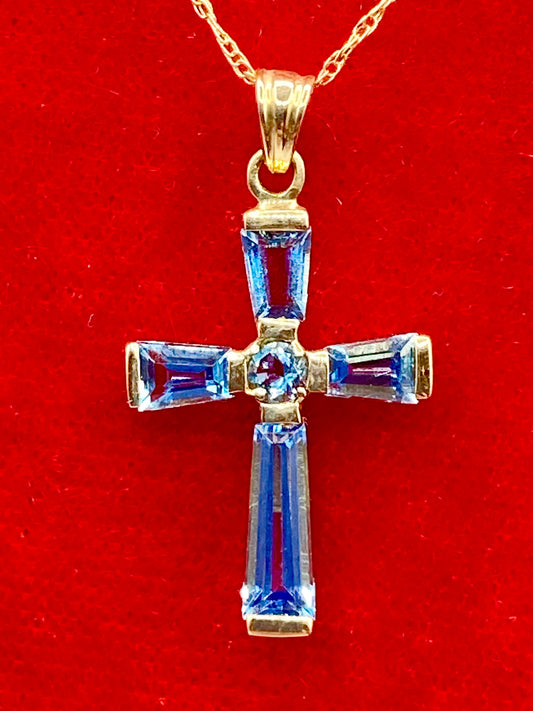 10K Gold Light Blue Topaz Cross Necklace