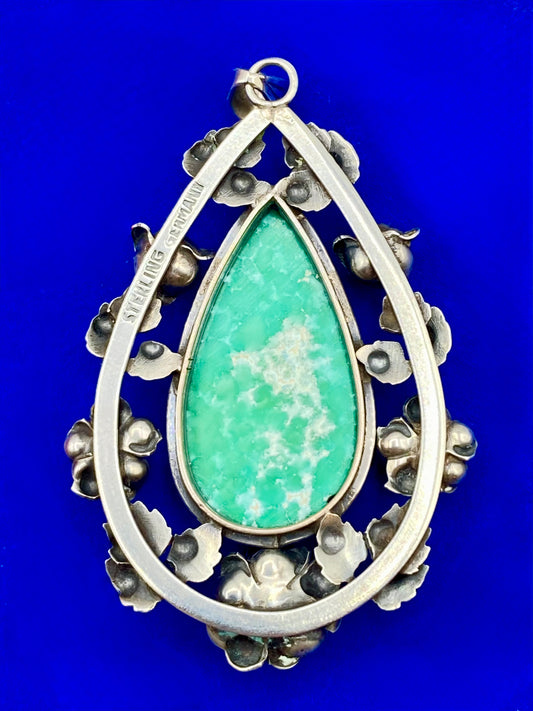 Vintage Sterling Silver Turquoise Floral Pendant