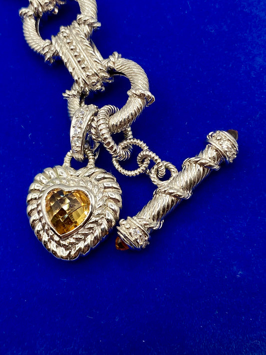 Judith Ripka Sterling Silver Link Bracelet w/Citrine Heart Charm Enhancer