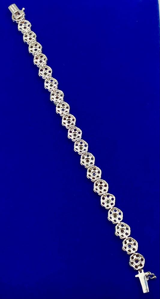 Sterling Silver Sapphire & Garnet Floral Bracelet