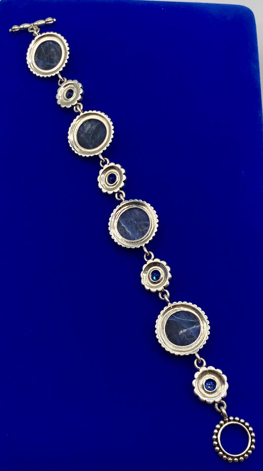 Sterling Silver Sodalite & Topaz Floral Bracelet