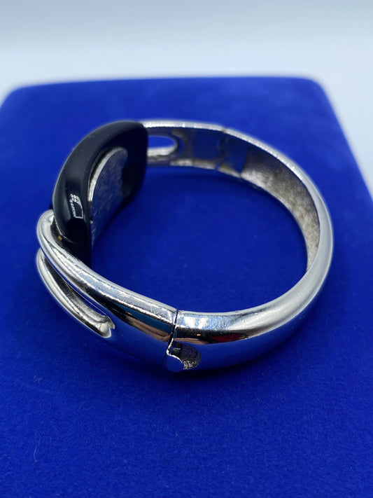 1976 Givenchy Paris Faux Onyx Silver Tone Bracelet