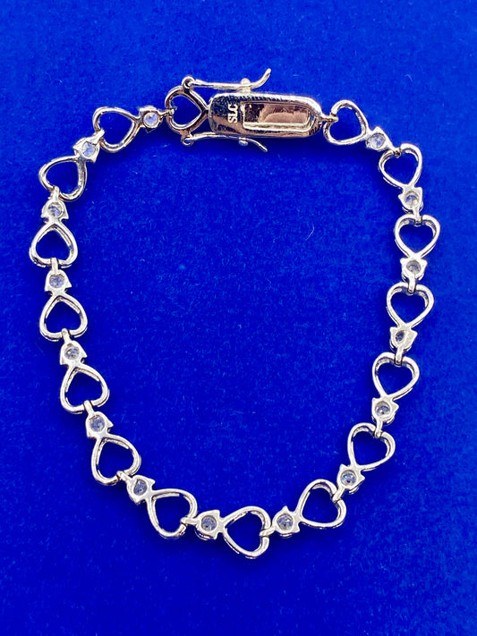 Silver Tone CZ Heart Tennis Bracelet