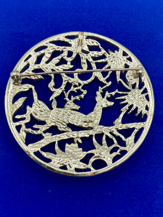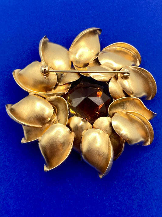 Huge Vintage Gold Tone Floral Brooch