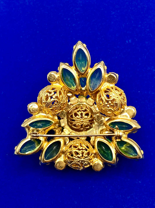 Juliana D&E Gold Tone Rhinestone Filigree Ball Brooch