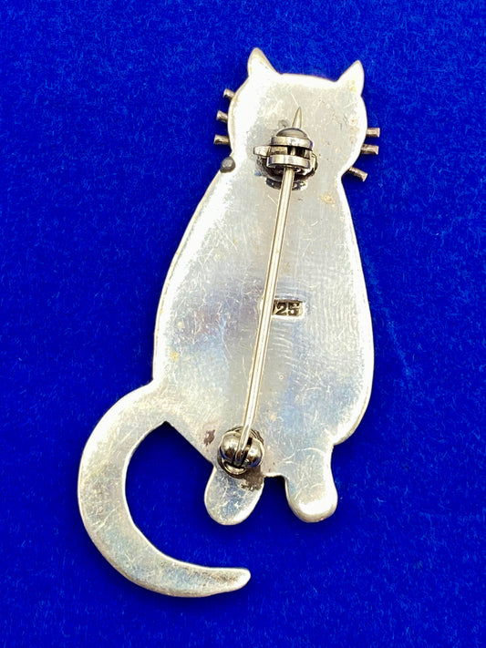 Vintage Sterling Silver Cat Brooch