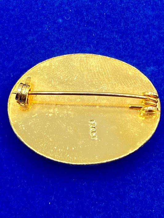 Italy Mosaic Gold Tone Brooch