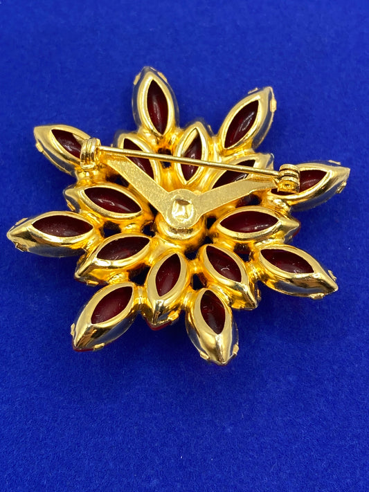 Red Rhinestone Glowing Floral Brooch
