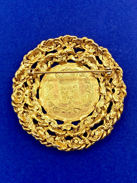 Gold Tone French Coin Brooch
