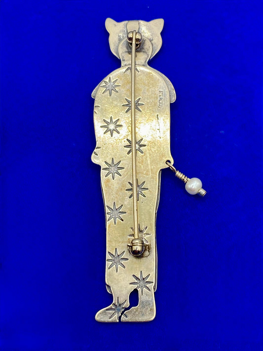 Sterling Silver Artisan Cat Person Brooch