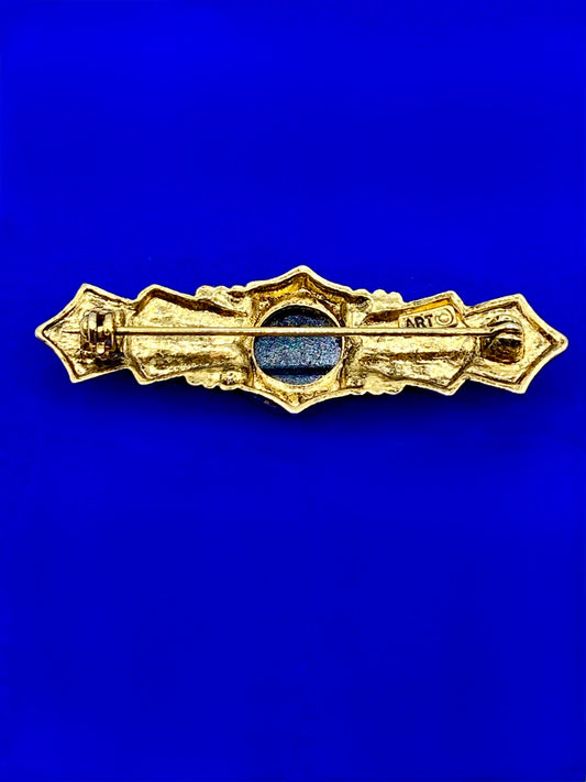 Vintage ART Gold Tone Intaligo Bar Brooch