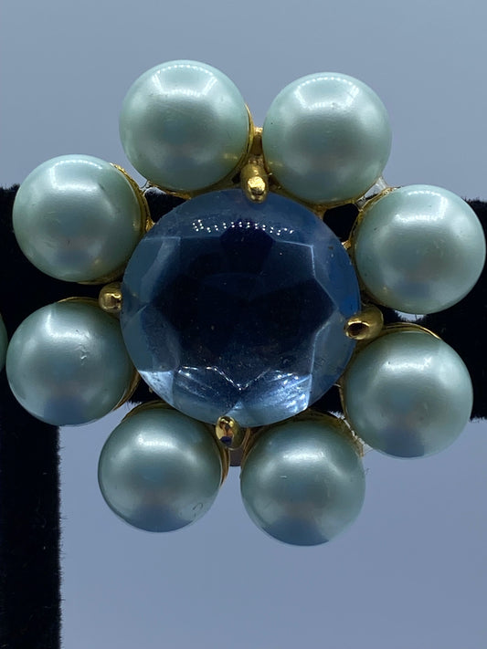 Vintage Schiaparelli Glass & Pearl Clip Ons