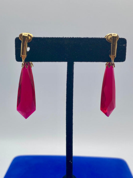 Pink Acrylic & Gold Tone Dangle Clip Ons