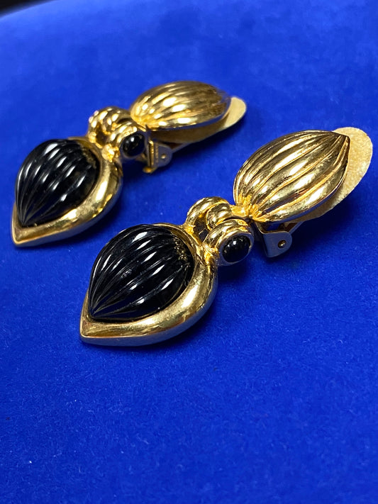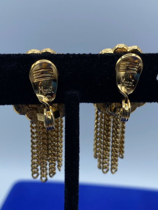 Vintage Monet Pom-Pom Gold Tone Clip Ons