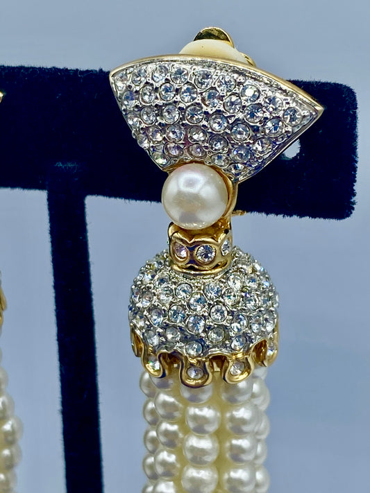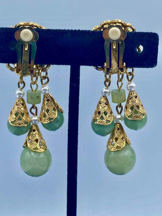 Vintage Gold Tone & Faux Pearl Dangle Clip Ons