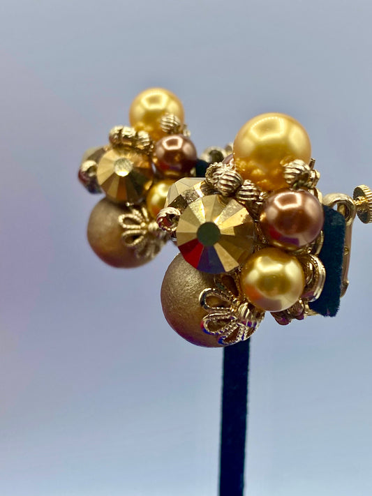 Vendome Faux Pearl Glass & Wood Cluster Clip Ons