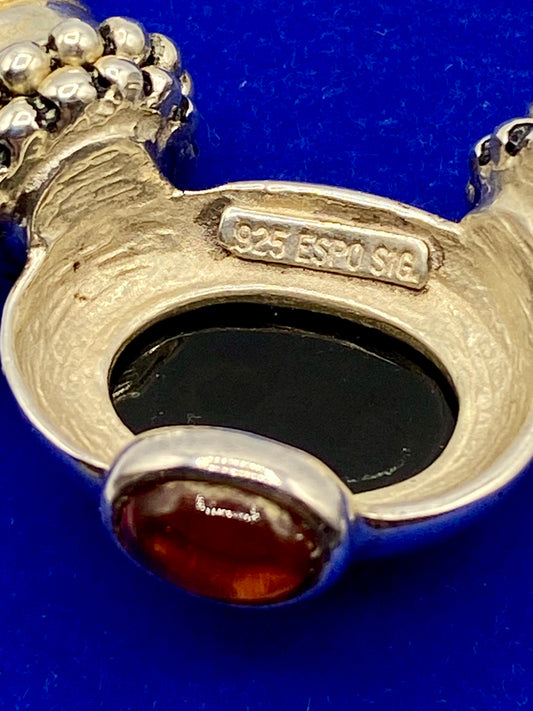 Sterling Silver Beaded 5 Strand Black Onyx & Amber Joseph Esposito ESPO Necklace