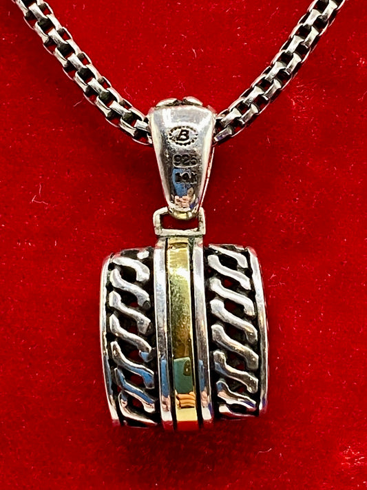 Sterling Silver & 14K Gold Ornate Rectangular Pendant Necklace