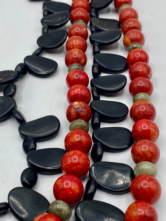 Jay King Necklace 4 Strand Coral Black Obsidian Bead Sterling Necklace