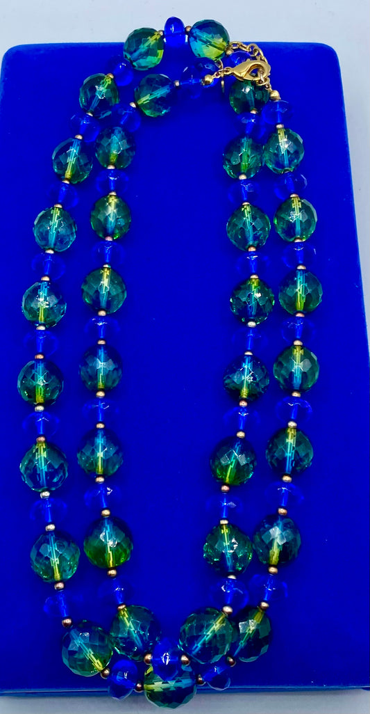 Joan Rivers Czechoslovakian Green & Blue Glass Necklace