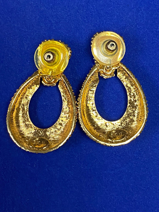 Vintage KJL Gold Tone & Rhinestone Earrings