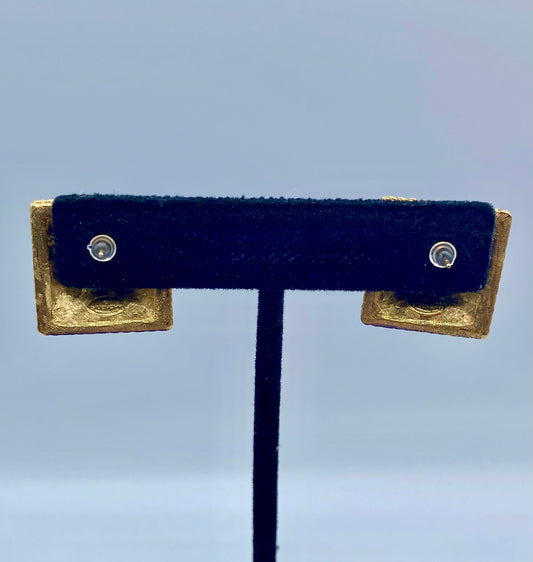 Vintage Givenchy Gold Tone Rope Square Earrings