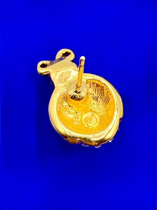 Vintage Gold Tone Trifari Green Enameled Earrings