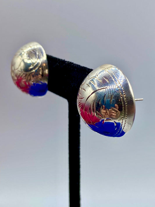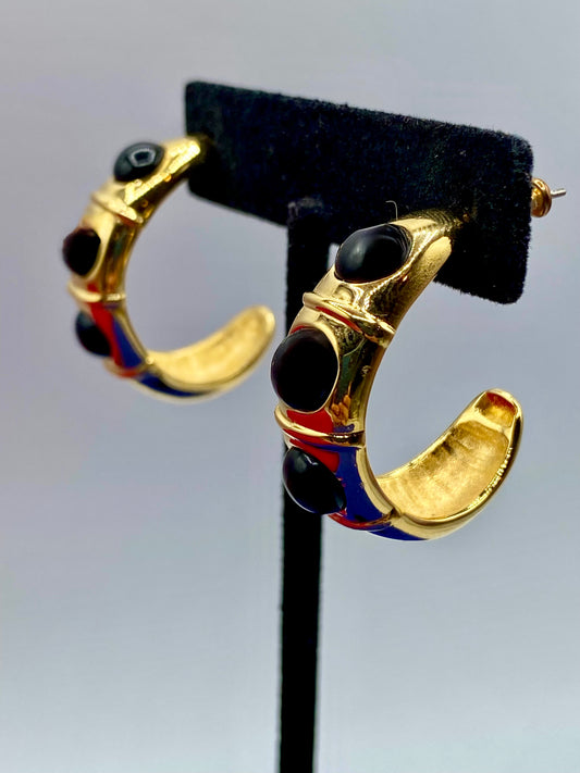 Vintage Monet Enamel Stripe Hoop Earrings