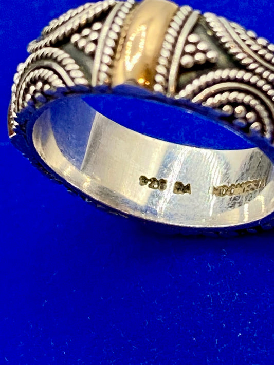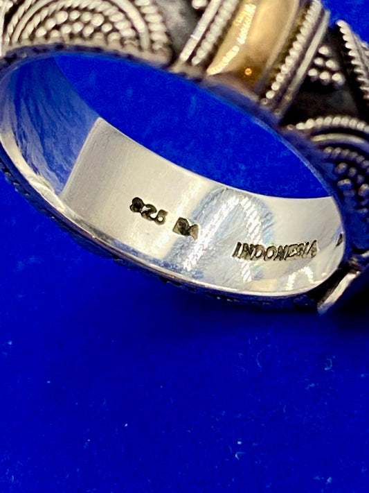 SUARTI BA Bali 18k Gold & Sterling Silver Scroll Cigar Band Ring