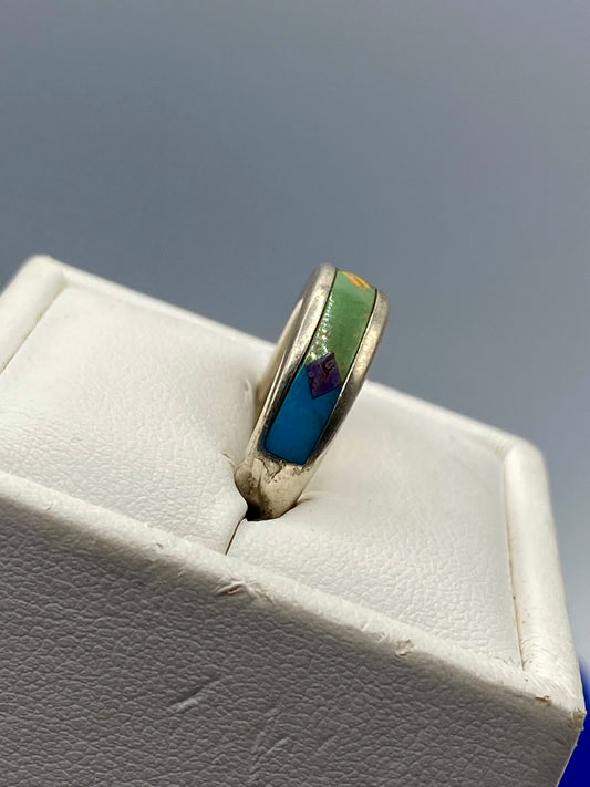 Native American Waldeck Johnson Silver With Turquoise Inlay Ring