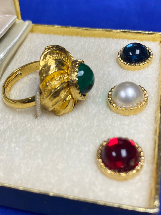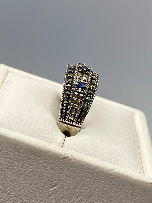Vintage Sterling Silver Judith Jack Marcasite Stones & Deep Blue Topaz Ring