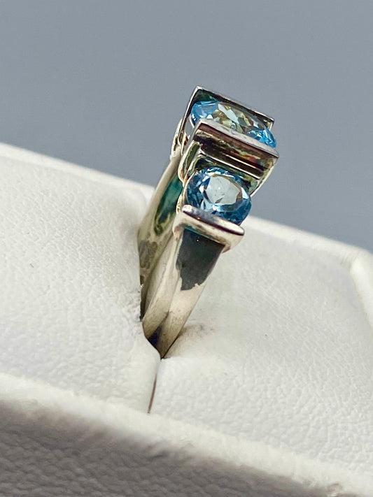 Sterling Silver Tri Stone Aquamarine Ring