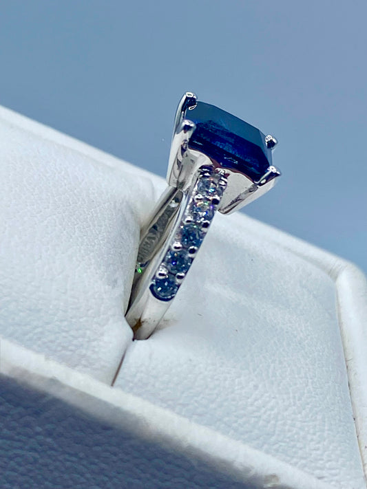 Sterling Silver Dark Blue Sapphire & CZ Ring