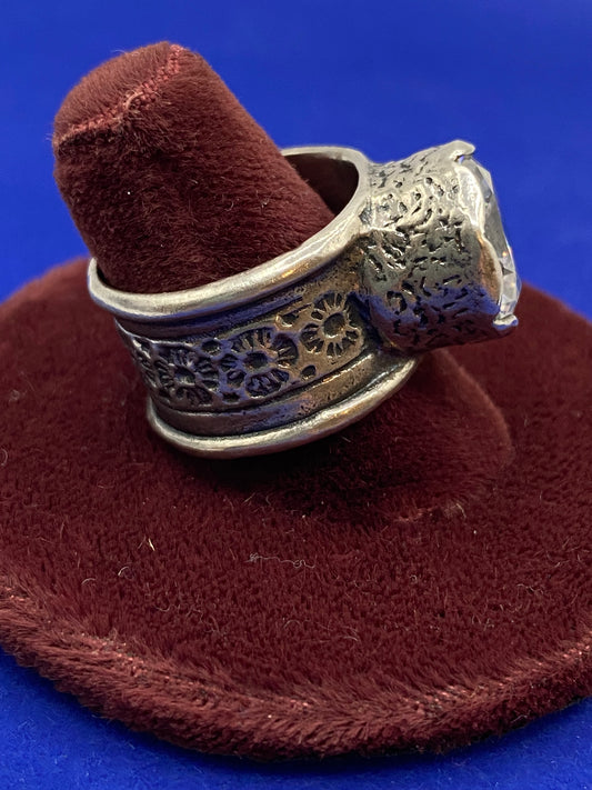 Silver Tone Glass Costume Ring