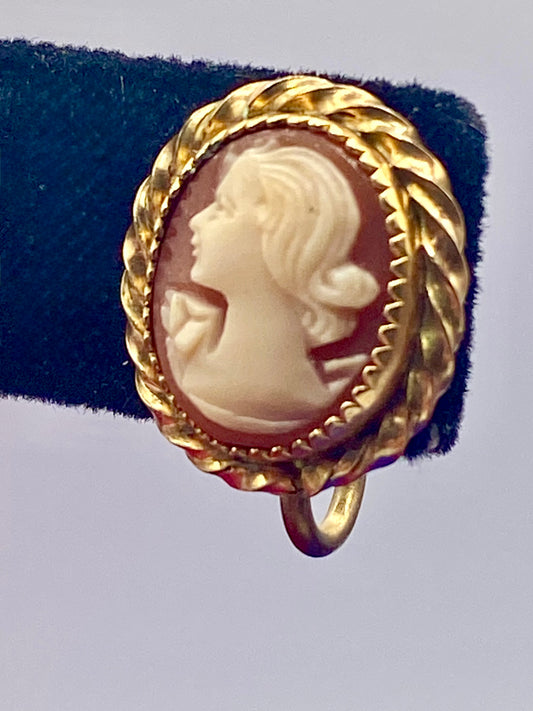 Gold Filled Shell Cameo Screw Back Earrings