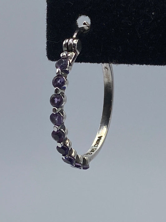 Ross Simmons Sterling Silver Amethyst Hoop Earrings