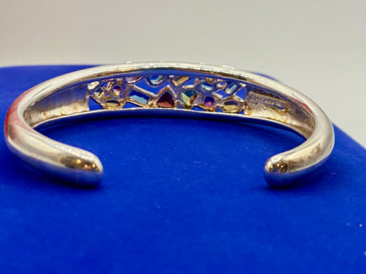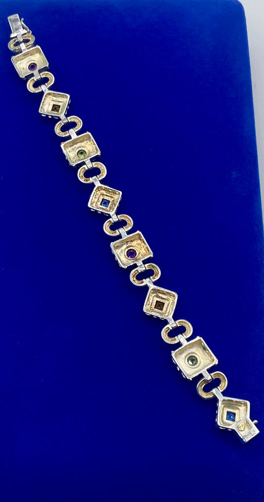 Sterling Silver Heavy Multi Gemstone Bracelet