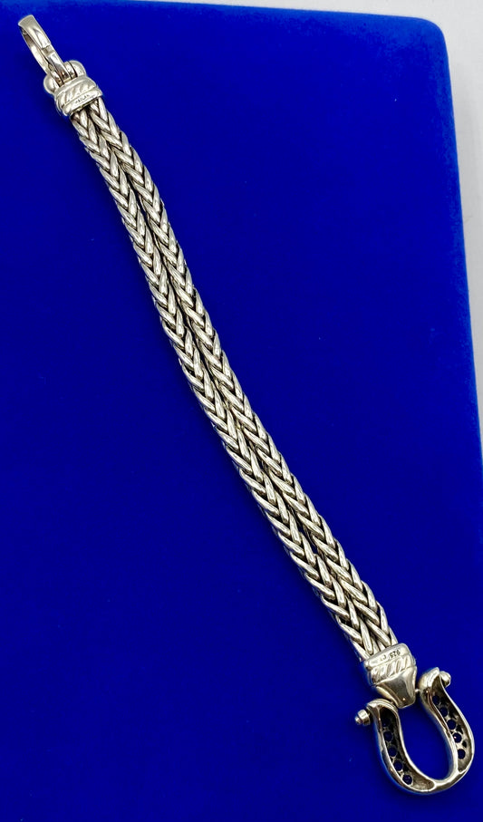Heavy Sterling Silver Braided Chain Bracelet w/ Amethyst Clasp