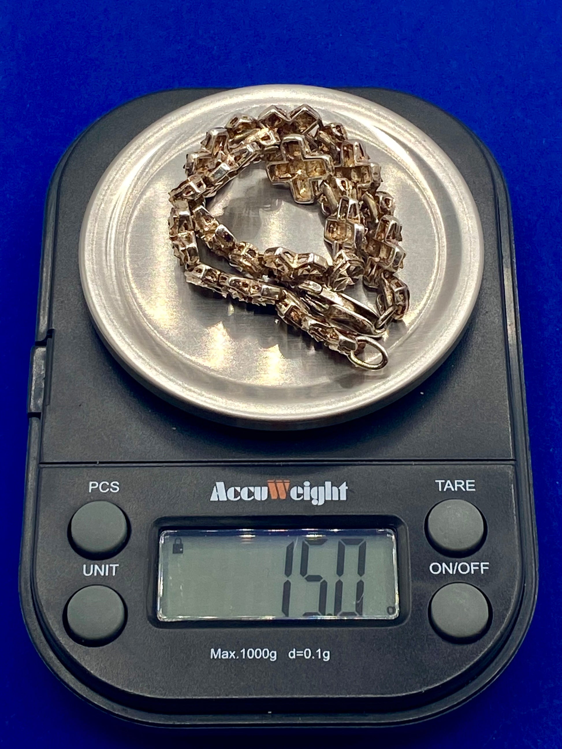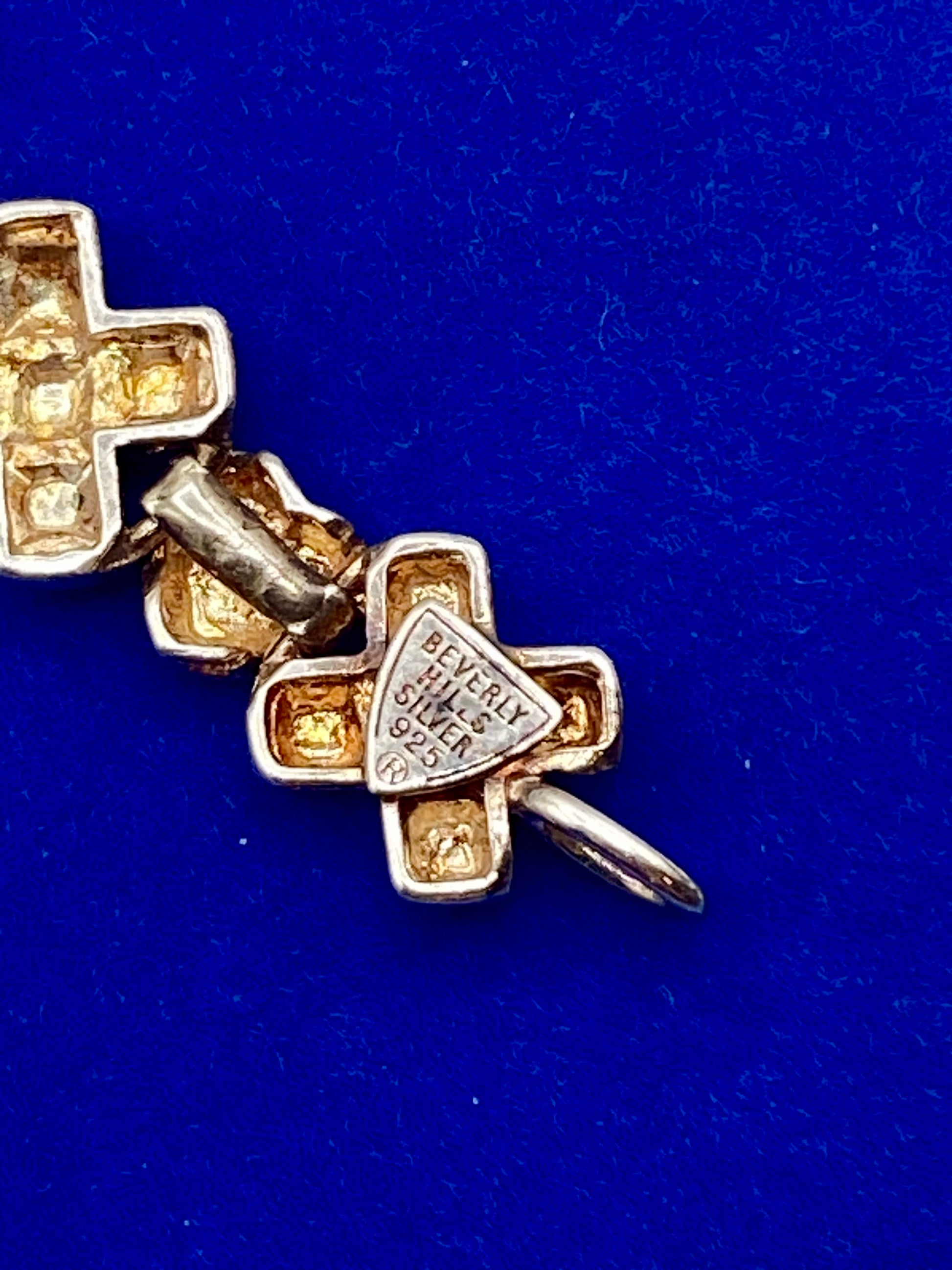 This Beverly Hills Sterling Silver Hearts XOXO Love Bracelet is the perfect addition to any jewelry collection. With a weight of 15 grams and a length of 6.5 inches, it is both lightweight and comfortable to wear. Show your love with the beautiful hearts and XOXO design.