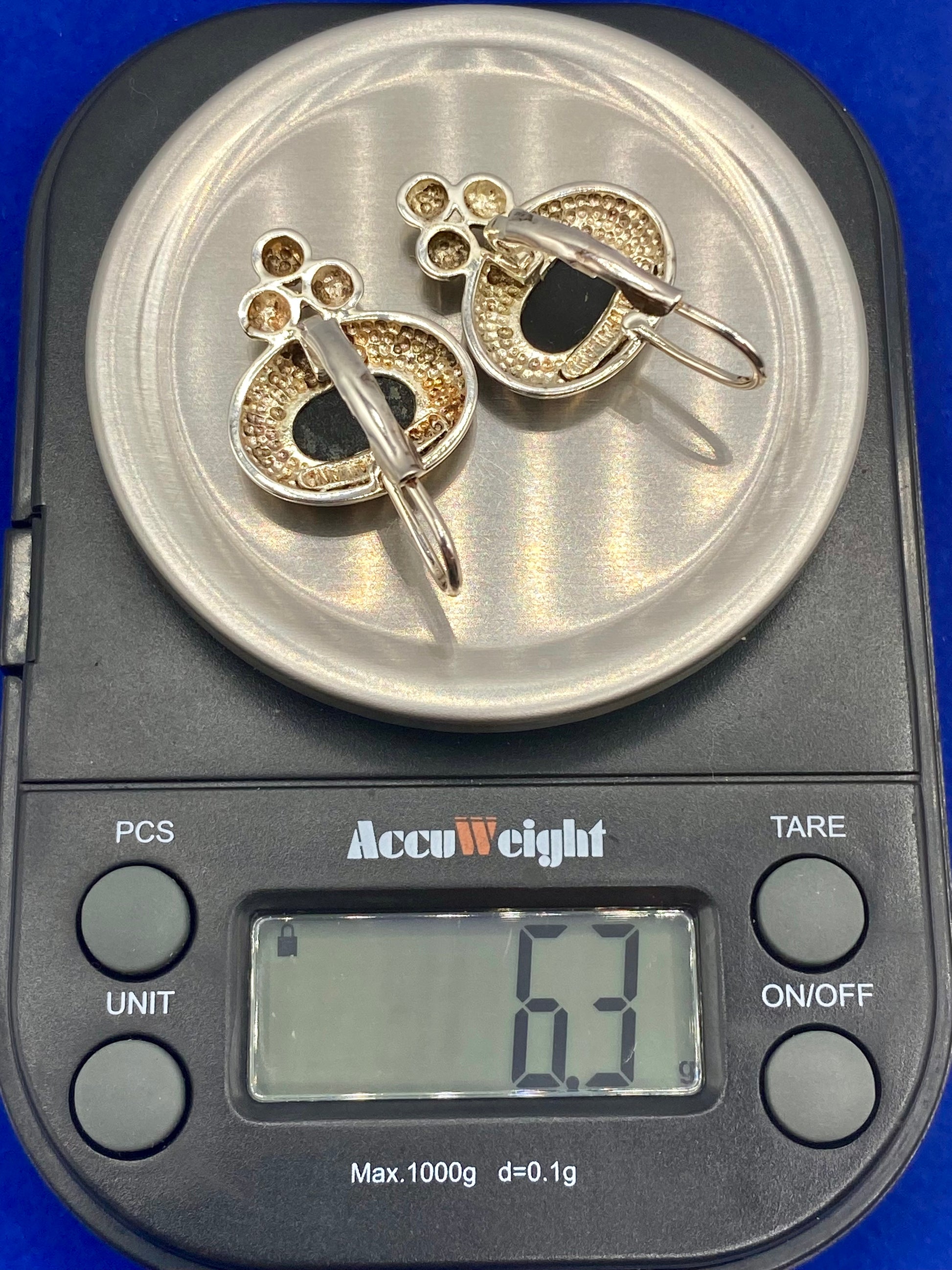 Expertly crafted with black onyx and sterling silver, these drop earrings weigh 6.3 grams and measure an inch in length. Experience the perfect blend of elegance and durability with these stunning earrings that effortlessly elevate any outfit.