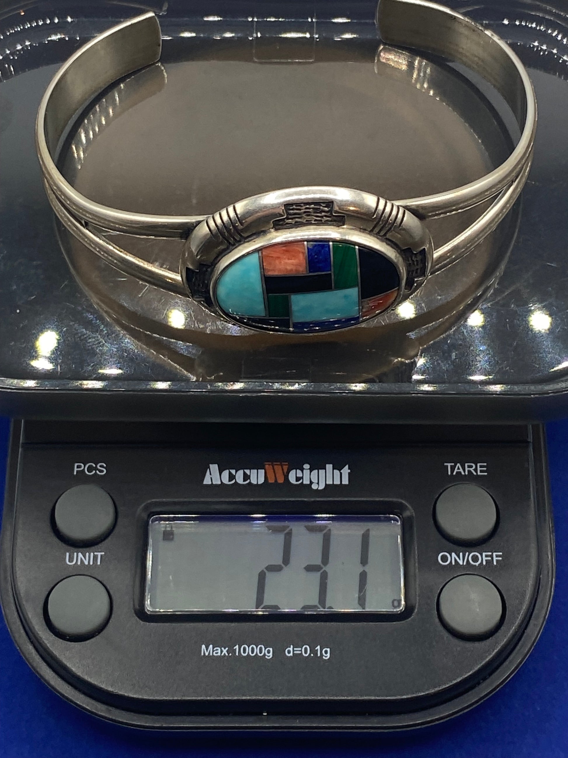 Expertly crafted from sterling silver and adorned with vibrant inlaid stones, the Carolyn Pollack Relios Multi Stone Cuff Bracelet is a stunning addition to any jewelry collection. Weighing 23.1 grams and available in a size 6, this cuff offers both style and comfort. Elevate any outfit with this beautiful and versatile piece.