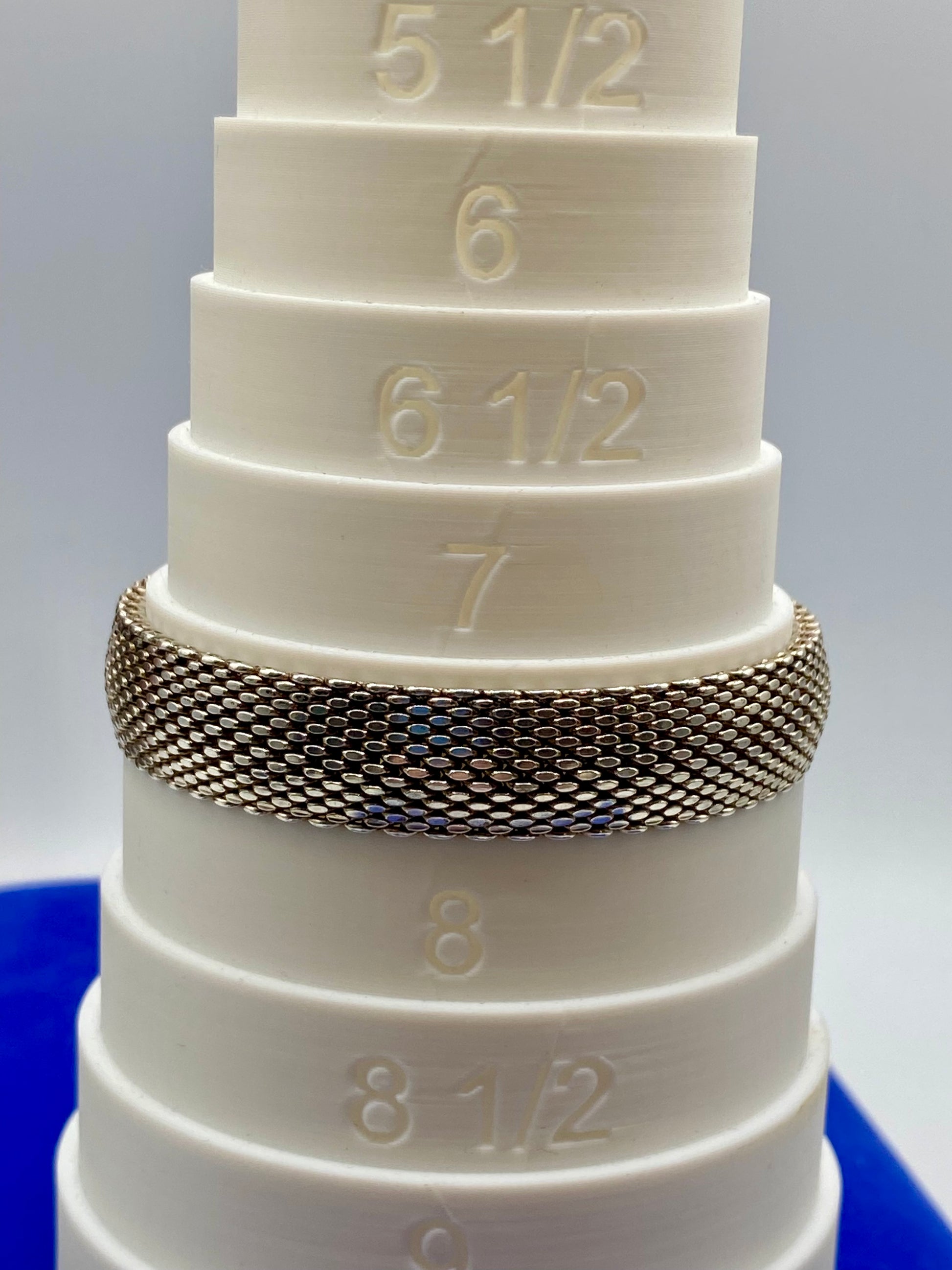 Expertly crafted from high-quality sterling silver, the GC Sterling Silver Mesh Link Bangle Bracelet is the perfect addition to any jewelry collection. With a weight of 41.1 grams, this bangle bracelet offers both durability and elegance. The size 7.5 fit ensures a comfortable and secure wear, making it the ideal choice for any occasion.