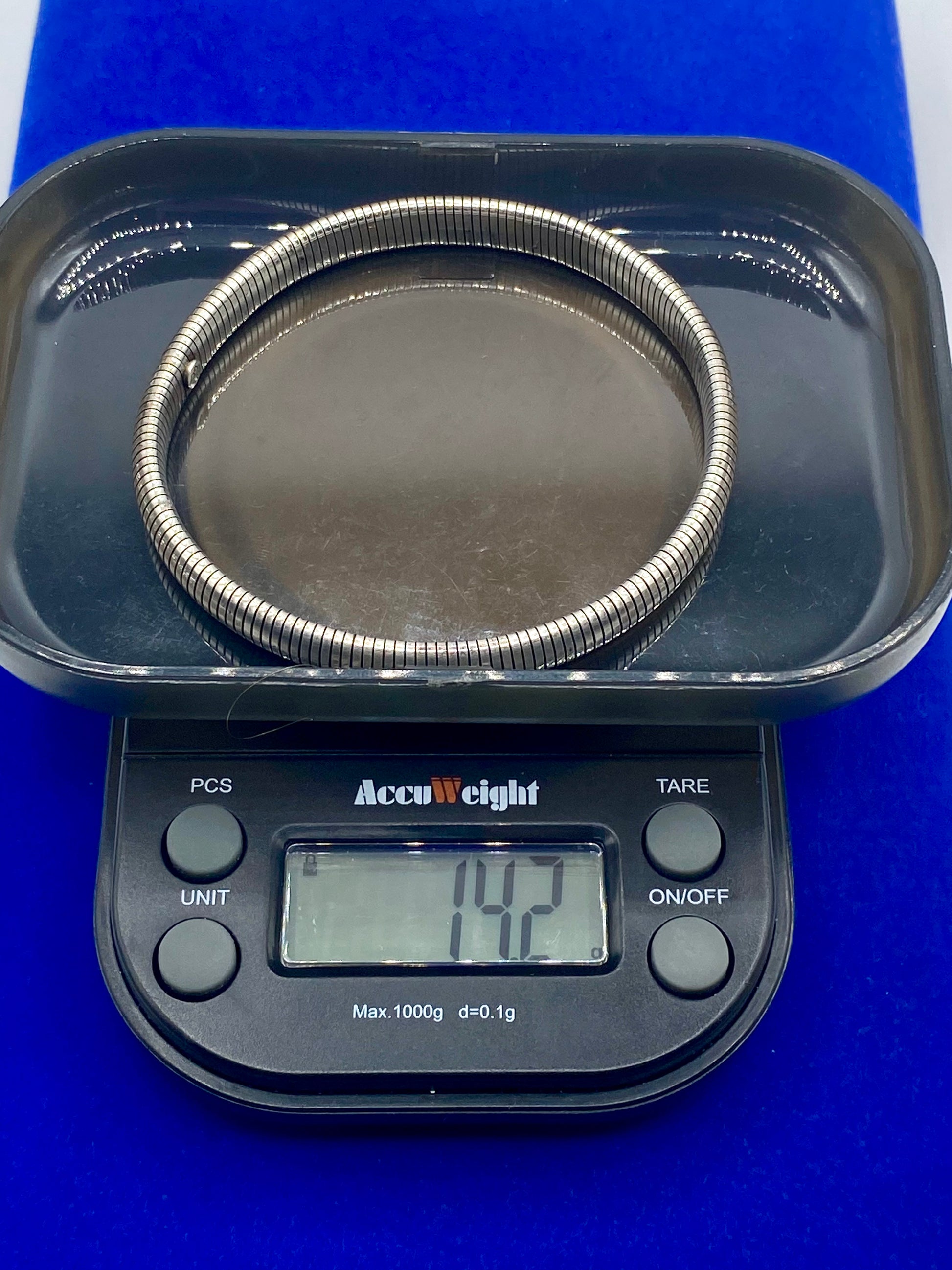 This GC Sterling Silver Mesh Link Bangle Bracelet is a stunning accessory made with 14.2 grams of high-quality sterling silver. Its small size at 7 inches makes it perfect for layering or wearing alone. Add a touch of elegance to any outfit with this timeless piece.