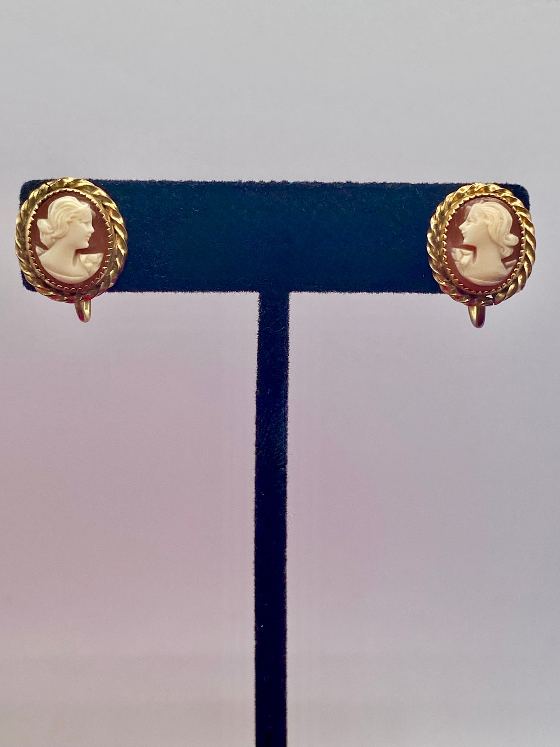 Expertly crafted with Shell Cameos and marked "1/20 12K GF", these Screw Back Earrings weigh 4.2 grams and are just under an inch long. Enhance any outfit with a touch of elegance and quality.
