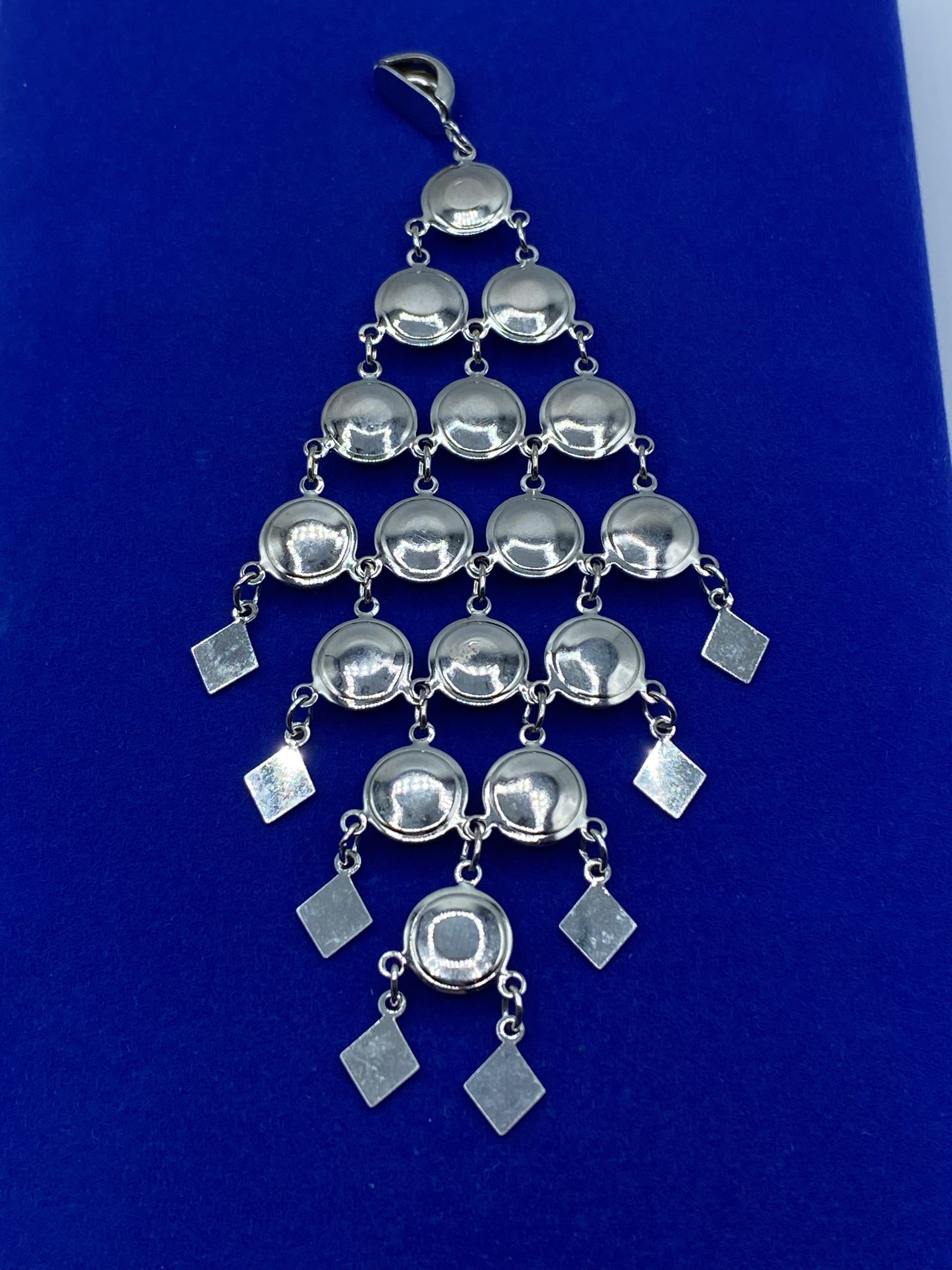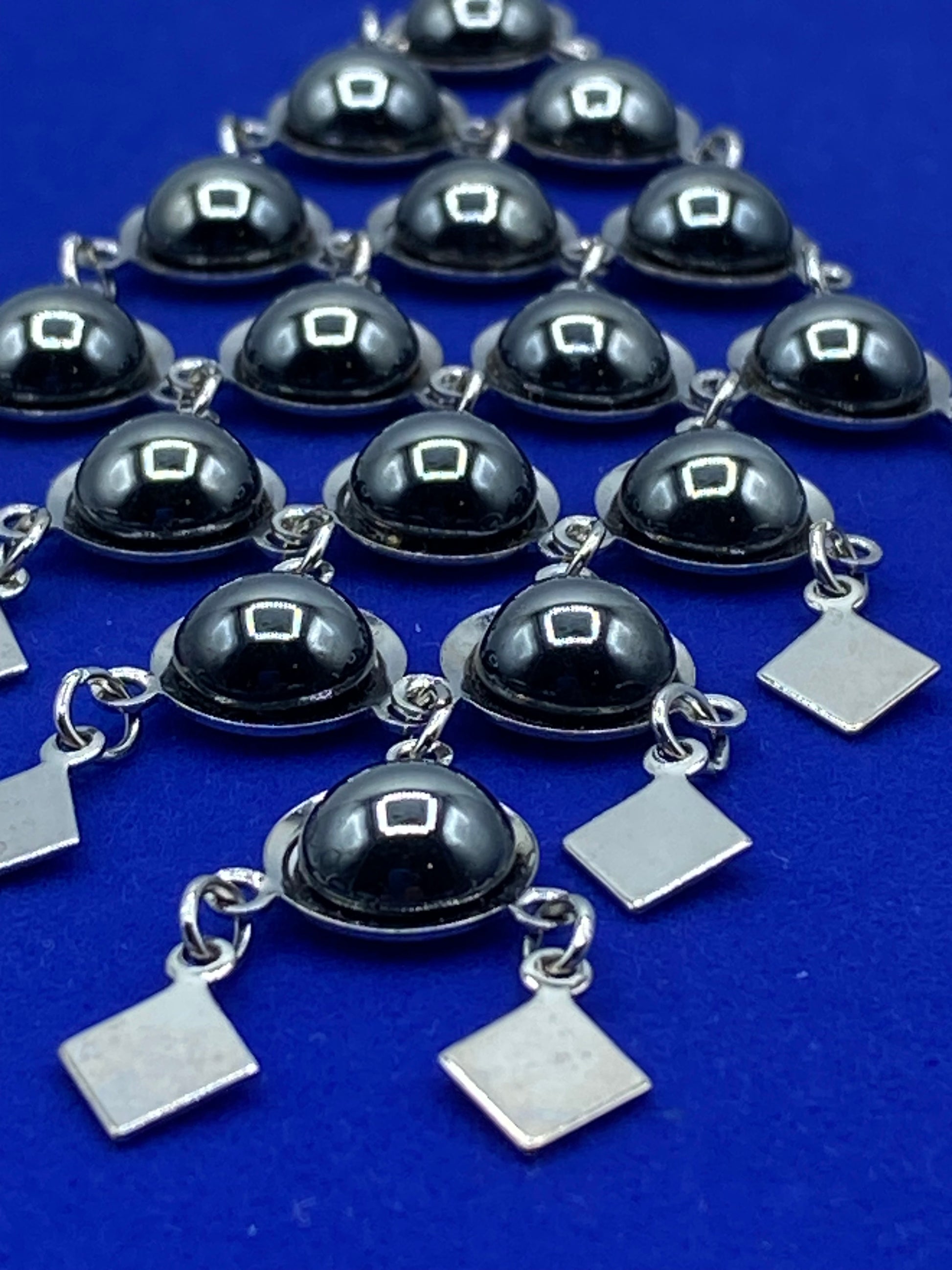 Upgrade your accessory game with our Hematite Silver Tone Dangle Pendant. Measuring at 5.25 inches long, this pendant will add a touch of elegance to any outfit. Made with hematite, known for its grounding and protective properties, this pendant is the perfect addition to your jewelry collection.