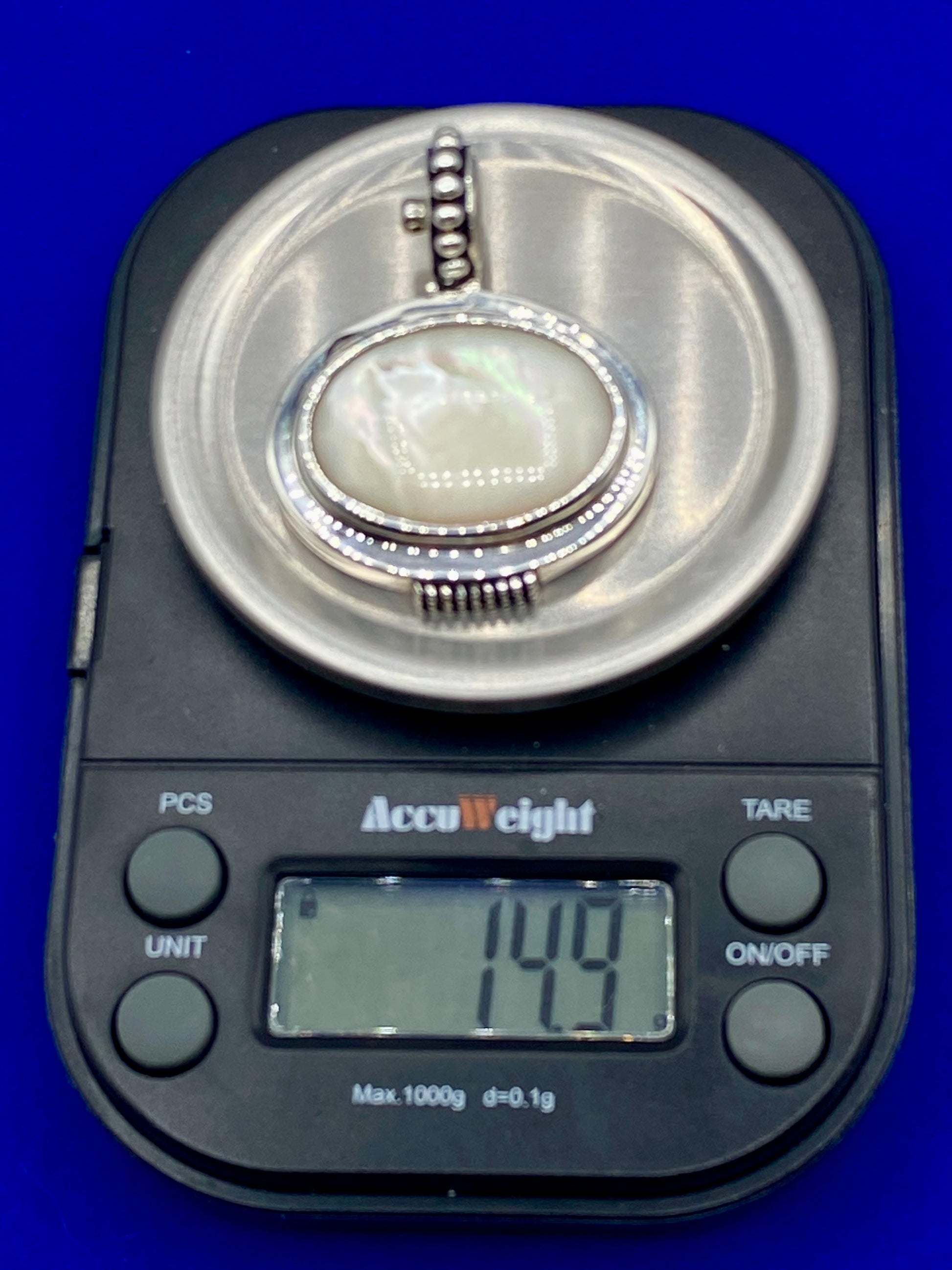 Expertly crafted by Joseph Esposito, this Sterling Silver MOP Oval Snap Pendant is a stunning addition to any jewelry collection. Weighing 14.9 grams and measuring 1.5 inches long, this pendant showcases the natural beauty of Mother of Pearl in a timeless and elegant design.