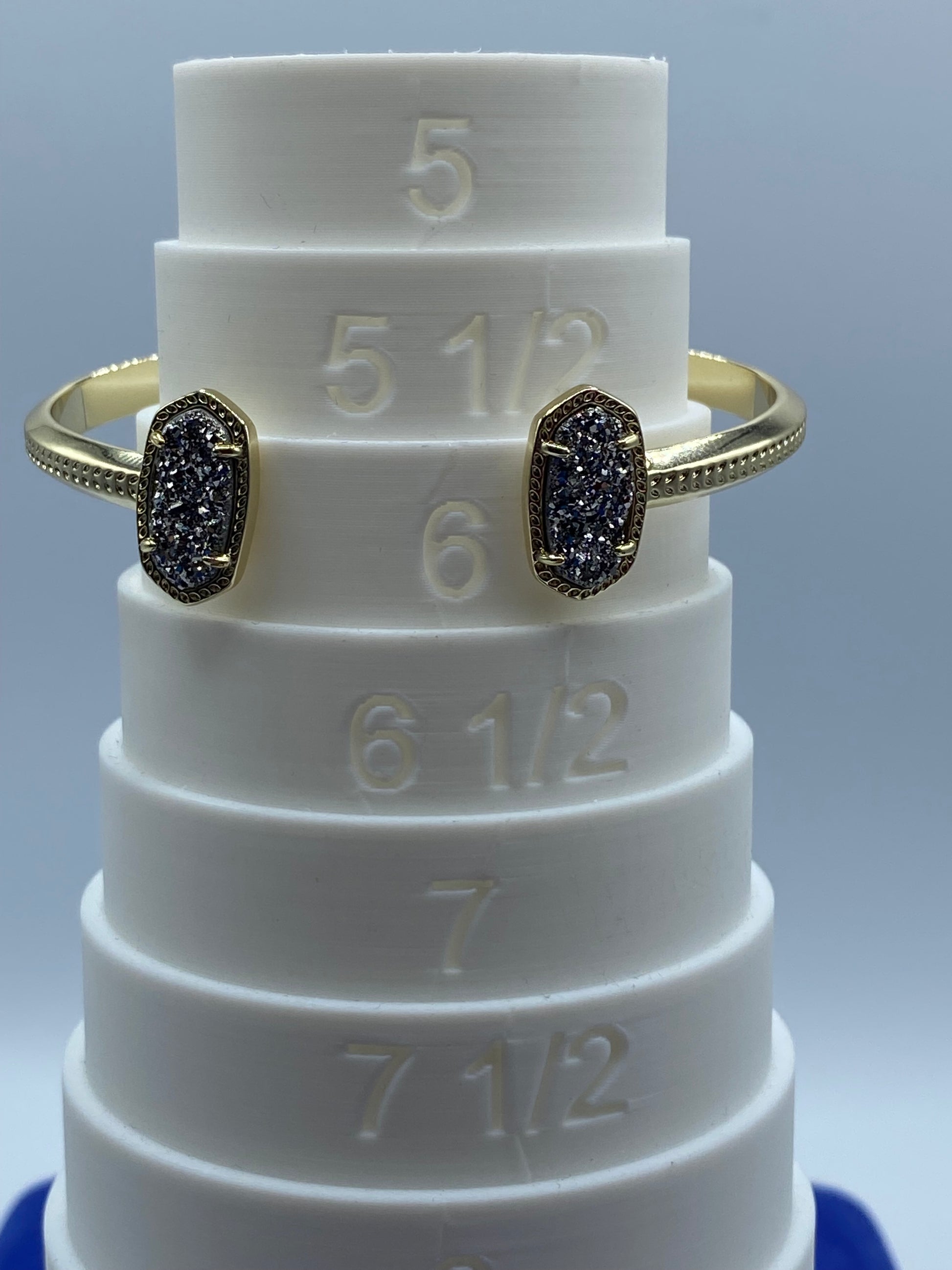 Experience luxury and elegance with the Kendra Scott Druzy Gold Tone Cuff Bracelet. Featuring a beautiful druzy stone and a gold-toned cuff, this bracelet adds the perfect touch of sophistication to any outfit. Available in size 6, this bracelet is the perfect addition to your jewelry collection.